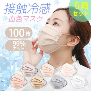 冷感マスク 接触冷感 100枚セット 不織布 マスク バイカラー カラーマスク プリーツ 血色カラー 大人 夏 冷感 ひんやり ジュエルフラップマスク