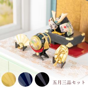 五月人形用 三品揃(軍扇 陣太鼓 陣笠)富士山水 20号 敷物セット 端午の節句 初節句 子供の日 マンションサイズ オリジナル コンパクト おしゃれ 太鼓付き