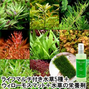 (水草)初心者向け 置くだけでレイアウト完成! 育てやすい水草 ライフマルチ(茶)セット(水上葉)無農薬 栄養剤付 おもり付 アクアリウム