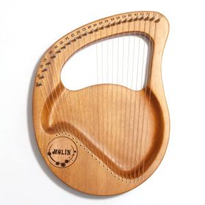 木製 ライアー ハープ 24弦 竪琴、マホガニーウッド 弦楽器 心癒され音色 、ハンドバッグ チューニングレンチ、初心者向け 子供用 成人用 (木の色)