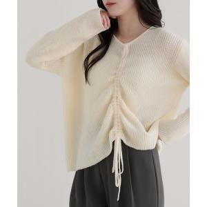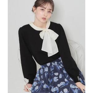 ニット セーター 「洗える・着映え」オーガンジーリボンタイ ニット レディース