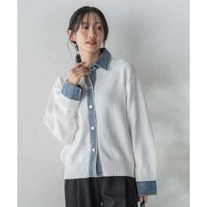 カーディガン デニムドッキングニットカーディガン「手洗い可能」 レディース