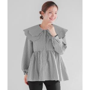 ブラウス シャツ ダブルスカラップギンガムブラウス レディース