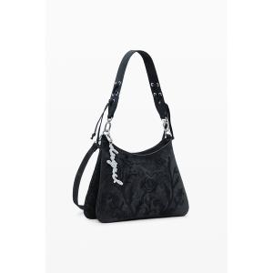 ショルダーバッグ バッグ 3Dエンボス フローラル 小型レザー風ショルダーバッグ ブラック レディース