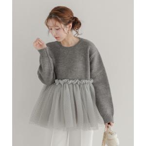 ニット セーター ドットチュールドッキングペプラムニット レディース