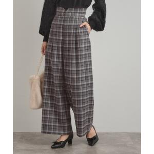 パンツ 「大人可愛い」起毛先染めチェック柄 スカラウエスト ワイドパンツ レディース