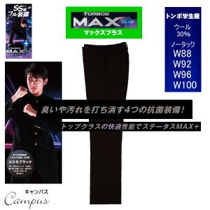 学生服 学生ズボン トンボ TOMBOW ノータック W88〜W100 TOMBOW マックスプラス 品番1133240 ウール30% ボーイズ ブラック 学ラン 下