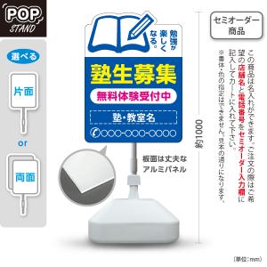 塾生募集 看板 学習塾 スタンド看板 スタンドサイン ポールサイン 注水台 名入れ セミオーダー商品 ブルー 屋外使用可