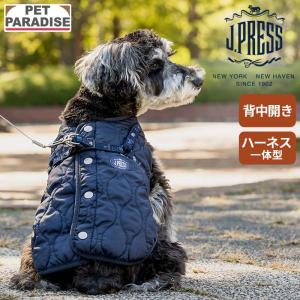 J.PRESS 犬 服 冬 オニオン アウターハーネス ネイビー 小型犬 | 背中開き 秋冬 一体型 おしゃれ かわいい かっこいい