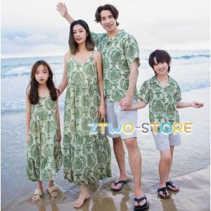 親子ペアルック ハワイ沖縄旅行 親子コーデ家族お揃いワンピース上下セット親子服アロハシャツ海辺ママパパ 子供メンズ レディース子供服セットアップ半袖ガール