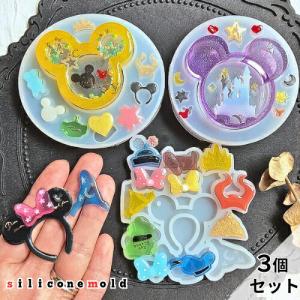 シリコンモールド ネズミ シャカシャカ モチーフ マウス 3個セット カチューシャモチーフ りぼん ハート 星 アニマル 月 お城 桜 シェイカ