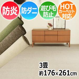 カーペット 3畳 3帖 防炎カーペット 丸巻き ラグカーペット 三畳 約176×261cm 日本製 防ダニラグマット 北欧 床暖対応 絨毯 床暖房対応 リビング 寝室 (S) 爆買