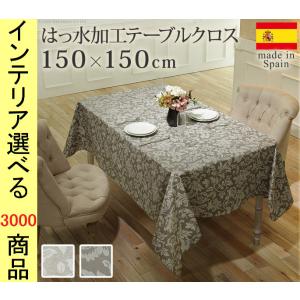 テーブルクロス 150×150cm 綿 撥水加工 ボタニカル柄 四角形 スペイン製 ベージュ・ブラウン色 YN61001548