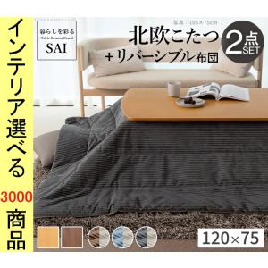 こたつセット テーブル+掛布団 120×75×39.5cm ボーダー柄 ウォールナット・オーク色 YNI5701355