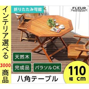 ガーデンテーブル 110×110×74cm 木製 折り畳み式 八角形 ブラウン色 YHSH0581062