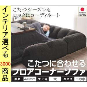 こたつ用フロアソファ 大 240×215×31cm ポリエステル コの字型 +40mmマット 日本製 ブラック色 YC840702983