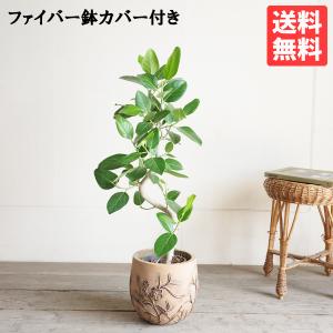 フィカス ベンガレンシス ベンガルゴムの木 ファイバー鉢カバー付き アンティークフレンチ 観葉植物 大型 中型 お祝い 送料無料 即日出荷
