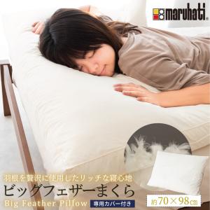 ビッグフェザー枕 枕 まくら 傾斜 逆流性食道炎対策 大きい 肩こり 解消 首こり 安眠 快眠 羽根 高め 低め 通気性 70×98cm パイル タオル カバー付 丸八真綿