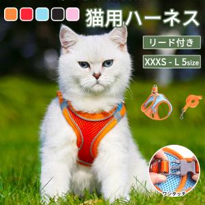 愛猫の首への負担を軽減!猫用ハーネス 胴輪 リード 猫用 犬猫兼用 抜けにくい 一緒にお出かけ 夜反射 通気性 超軽量 簡単脱着 お散歩 お出かけ 脱走防止