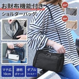 お財布ショルダー バッグ スマホ ウォレット 斜めがけ 大容量 軽い クリアポケット ダブルファスナー おしゃれ シンプル ユニセックス