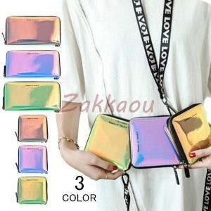 二つ折り財布 財布 コンパクト 小さめ コインケース ウォレット ホログラム フェス 旅行 修学旅行 レディース 二つ折り 首掛け 女の子 ファスナー 紐付き