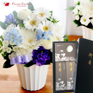 お供え 花と線香のセット 旬の洋花を使った旬のおまかせ お供え花 Sサイズ と ご進物用お線香 葵乃舞 お悔み FKAA
