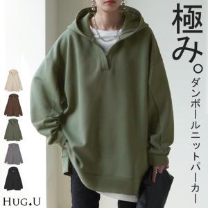パーカー レディース ニュアンスカラー トレーナー ニット ニットパーカー トップス プルオーバー スリット