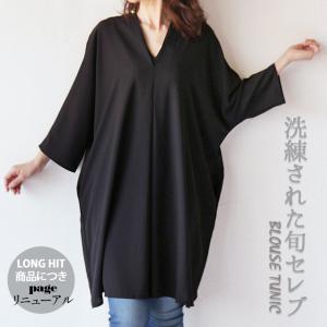 洗練された旬セレブ Vネックブラウスチュニック ブラック OTONA 40代 50代 60代