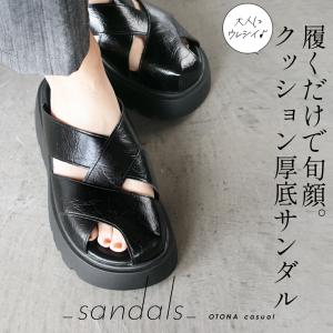 履くだけで旬顔大人に嬉しい♪ クッション厚底サンダル 歩きやすい 痛くない 疲れない 脚長効果 スポサン 春 夏 秋 ブラック OTONA 40代 50代 60代