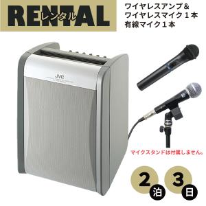 レンタル ワイヤレスアンプ ハンド型ワイヤレスマイク1本&有線マイク1本 セット 2泊3日プラン JVC ビクター ケンウッド PE-W51S-M(有線マイク ケーブル付き)