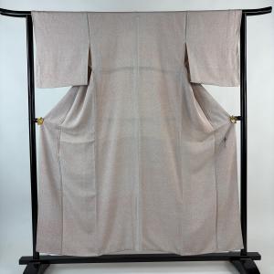小紋 身丈156cm 裄丈64cm M 袷 松井青々 落款あり 幾何学 薄ピンク 正絹 名品 一つ紋 中古