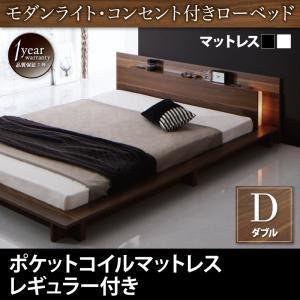 ダブルベッド ローベッド ロースタイル モダンライト コンセント フロアベッド スタンダードポケットコイルマットレス付き ダブル