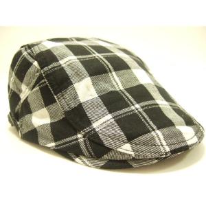 横浜最新 さわやかチェック柄♪魅惑のハンチング黒系 メンズレディース 送料350円帽子1