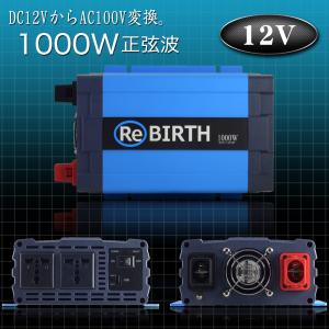 インバーター 正弦波 DC 12V AC 100V 変換 定格 1000W 瞬間 2000W 50Hz 60Hz 切替 車中泊 バッテリー 電源 キャンピングカー