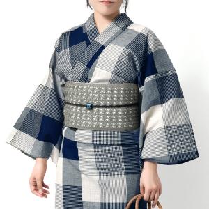 浴衣 綿麻 先染め ブロックチェック ネイビー 紺 ベージュ 格子 レディース 幾何学 シック モダン 仕立上がり20代 30代 40代 50代 女性用 単品