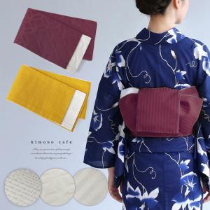 浴衣帯 半幅帯 袴下帯 七宝柄 ストライプ 格子 ホワイトマスタード バーガンディ シンプル ポリエステル 洗える 細帯 小袋帯