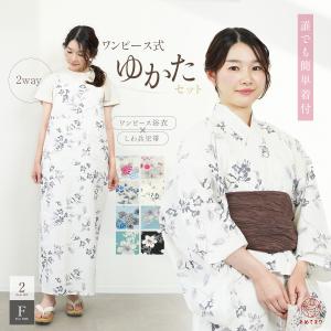 【新作】浴衣 セット ワンピース浴衣 しわ兵児帯 浴衣セット セパレート 兵児帯 簡単着付け 2点 2way 二部式 トレンド 綿100% くすみカラー かわいい おしゃれ
