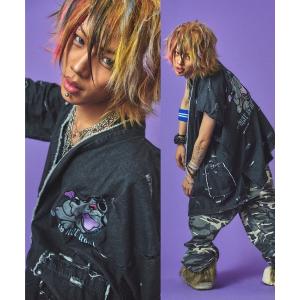 浴衣 GALFY(ガルフィー)病みに染まりしボロボロ甚平/ダメージデニム甚平 メンズ レディース ユニセックス メンズ レディース