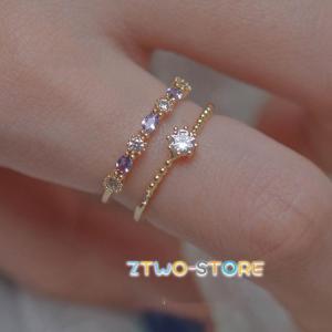 指輪 レディース リング 2点セット 一粒 パープル フリーサイズ カジュアル おしゃれ ゴールド 18kgp 女性 プレゼント