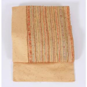 名古屋帯 ヒゲ紬 濃いベージュ グリーン 紫 茶 オレンジ /B144