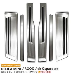 【アウトレット特価】新型デリカミニ 新型ルークス ekクロススペース スカッフプレート シルバーヘアライン パーツ カスタム 2025年フルモデルチェンジ後対応