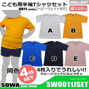 特価商品 2セット以上で送料無料 お得な4枚セット 0011 こども用半袖Tシャツセット 綿100% ヘビーウェイト 胸ポケット無し sw0011jset 桑和 SOWA@