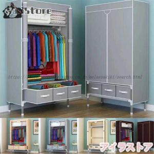 ワードローブ大容量カバー付きクローゼットハンガーラック3つの引き出し整理タンス衣類収納組み立て式工具不要(グレー)