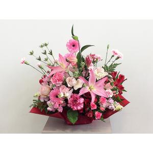 【お祝い】花キューピット 敬老の日 誕生日 記念日 結婚祝い 歓送迎 還暦 開店開業 卒業入学 生花 ユリとピンクバラのアレンジメント