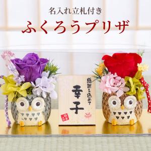 還暦祝い 女性 花 プレゼント名入れ 名前入り ギフト 縁起物 福 ふくろう プリザーブドフラワー 誕生日 古希 米寿 喜寿 傘寿のお祝い 記念品 母 祖母