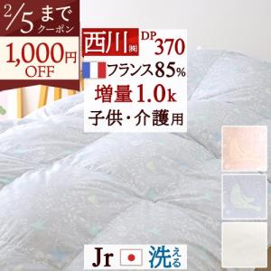 西川 羽毛布団 ジュニア 西川掛布団カバー特典付 抗菌 フランス産ダウン85% 中央増量 あったか1.0kg DP370 洗える コインランドリー対応 日本製 西川 掛布