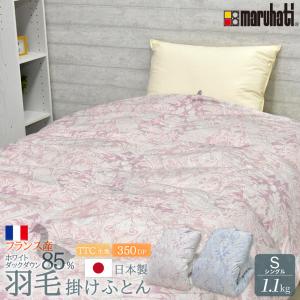 丸八真綿 羽毛布団 フランス産 ホワイトダックダウン85%使用 シングル 1.1kg 掛け布団 150×210cm 日本製 掛けふとん 立体キルト 丸八 あったか ピンク ブルー