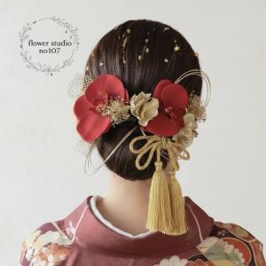 胡蝶蘭髪飾り タッセルリボン 髪飾り 成人式髪飾り 和装髪飾り 卒業式髪飾り