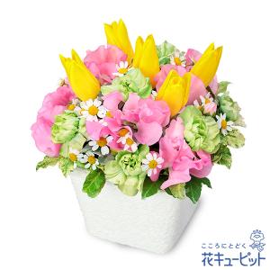 【チューリップ特集】花キューピット お誕生日 記念日 歓送迎 お祝い ホワイトデー イエローチューリップのアレンジメント