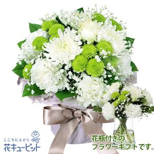 【お供え・お悔やみの花】花キューピット 翌日配達 仏花 供花 法要 枕花 お盆 お彼岸 四十九日 生花 お供えのグラスブーケ(花瓶付き)